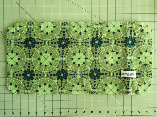 - We added our Sew4Home label to the exterior panel. If you’d like to add a label to your project, do it now. Place the label in the bottom right corner of the exterior panel approximately 2″ in from the side and 2″ up from the bottom.