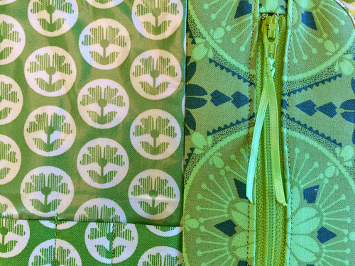 NOTE: If you are new to making and working with bias tape, read through our tutorial on the fascinating world of bias tape creation and application. - We attached a ribbon through the zipper pull as a final touch.
