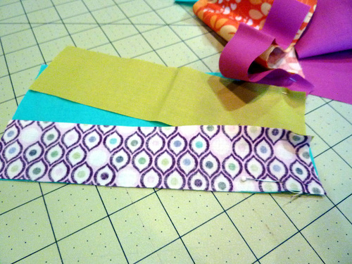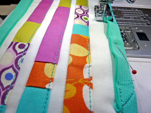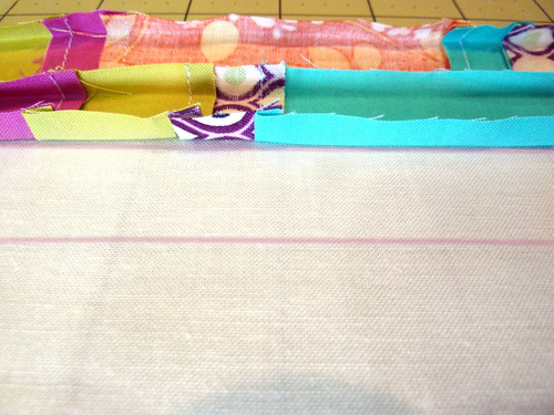 - Edgestitch the strips in place along the bottom edge of each strip. You are stitching through both the front and back layers.