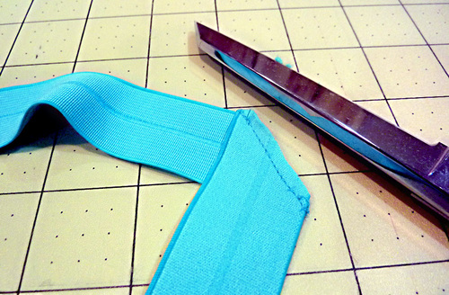 - Cut the fold-over elastic in ONE 27″ length.