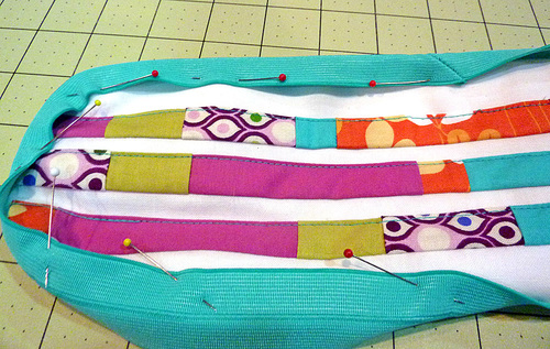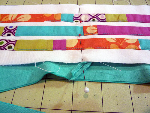 - Pin the elastic to the outer edge of the panel, wrapping from the front…
