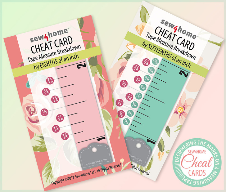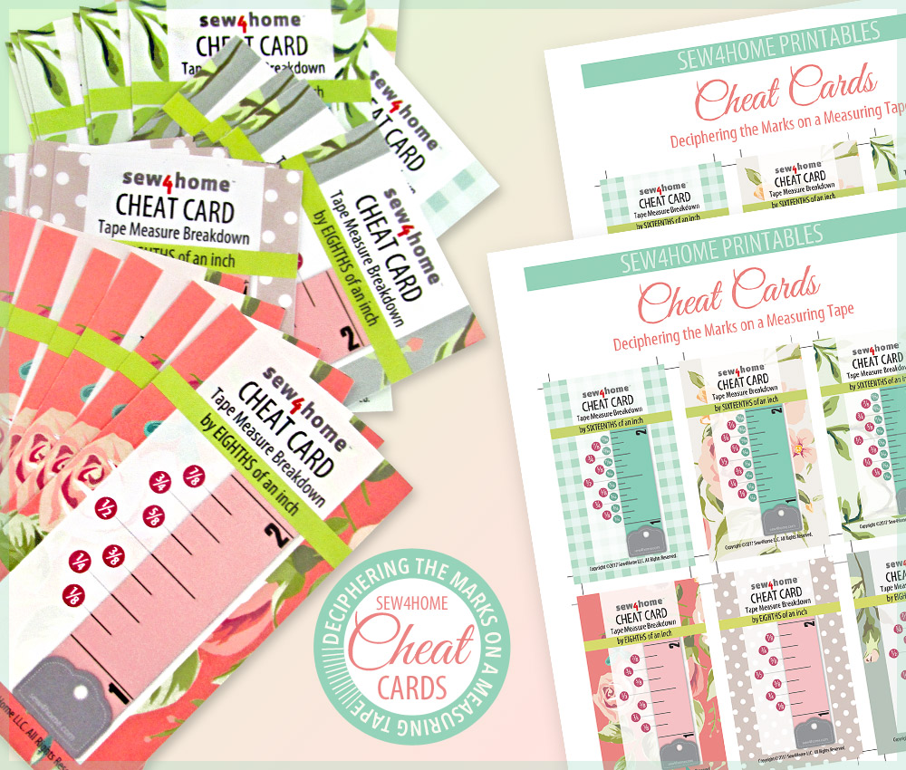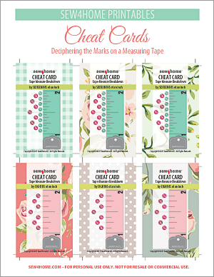 Don’t laugh. This printable in our Cheat Card series is based on one of our most popular articles. Really! If you’ve been sewing forever, and work with fractions every day, it may seem crazy to you that someone wouldn’t know how to read a measuring tape. But if you step back for a moment, and look at that tape measure (or ruler for that matter) with the eyes of a new sewer, all those little unidentified marks might seem a bit intimidating. As one of our original commenters said, “Thank you so much for sharing this. I am definitely the kind of person who was too scared to ask a dumb question! You’ve made my life so much easier!”