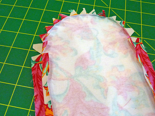 - Clip the corners and the curves and press open the seam allowance. You want a nice smooth curve to the pocket flap so be generous with the clipping around the curve, just be careful to never clip through the seam.