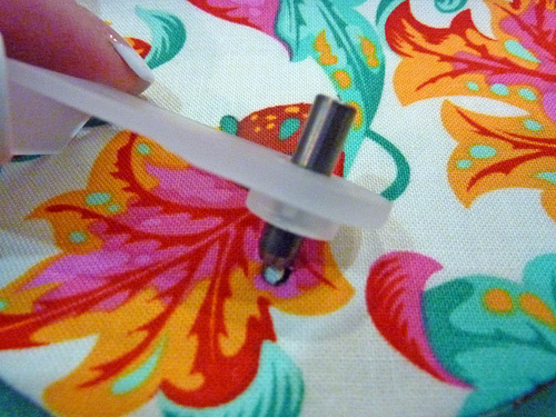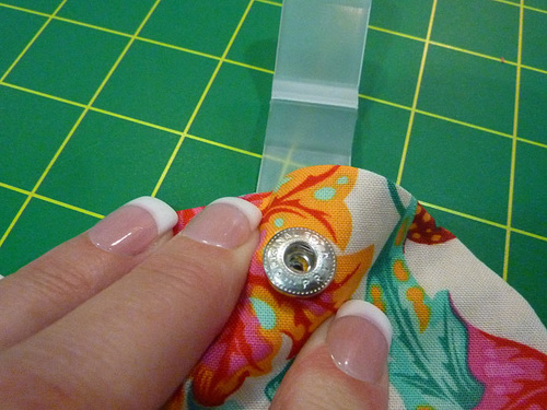 - Close the Snap Tool to secure the cap top to the cap bottom through the fabric.