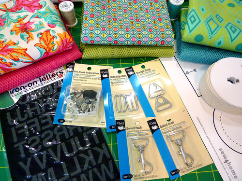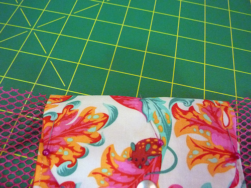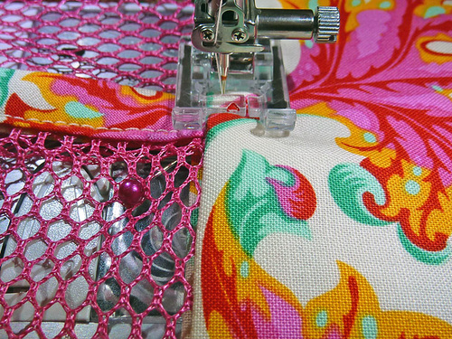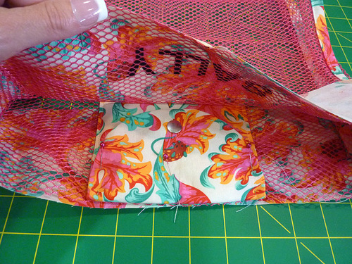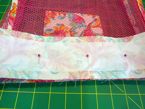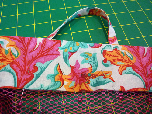 Set-in side panels give the bag its dimension. They’re sewn seam-out with the seam allowances covered by the bright bias binding. This leaves the inside of the bag completely smooth without any of the scratchy edges that can sometimes be a problem when working with mesh.