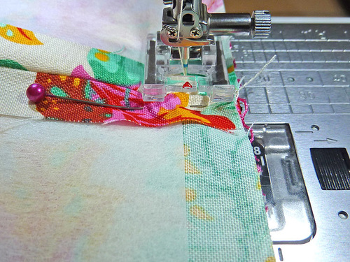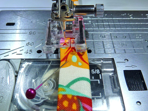 - Re-set the stitch length to normal. Stitch together the two 28” strips end to end to create one 55” length.