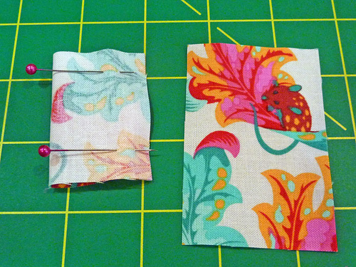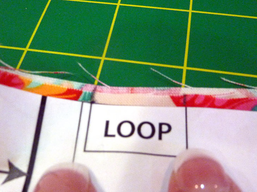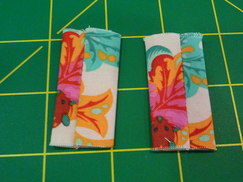 - Fold each loop strip in half (2” x 1½”), right sides together. Pin in place.