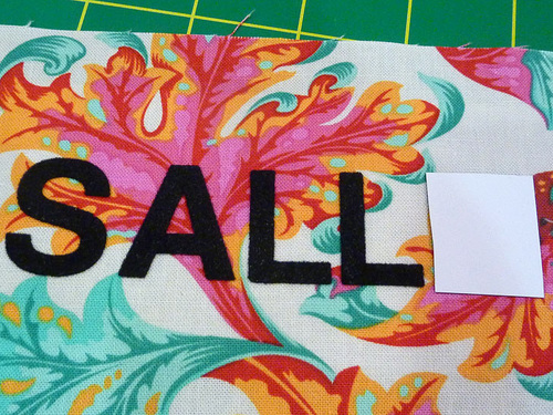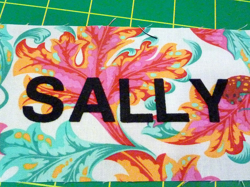 - With the word in place, fold the panel in half, right sides together, aligning the 3½” raw ends. Pin in place.