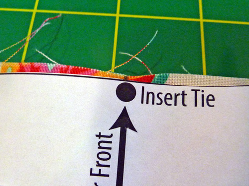 - Machine baste the ties and the loops in place along the upper raw edge.