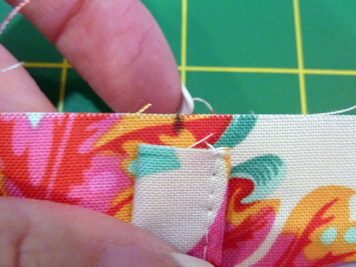 - Stitch in place to secure, running across and back several times for a nice, tight seam.