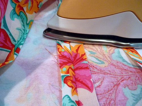 - Fold each strip in half (1” x 27”), wrong sides together, and press to set a center crease.