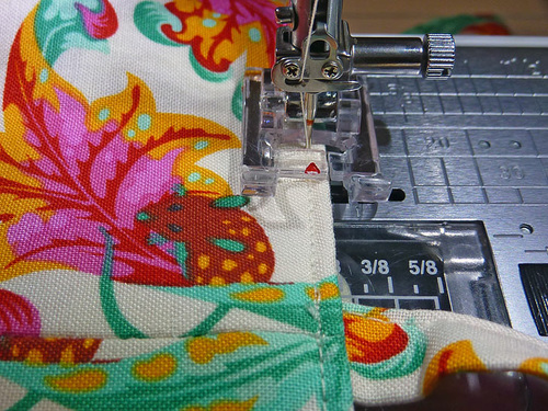 - Using a ⅜” seam allowance, stitch each side panel in place.
