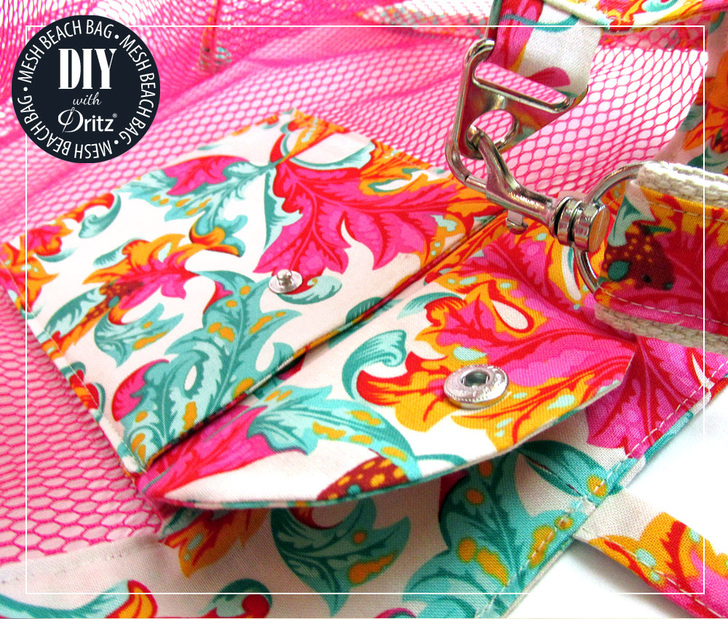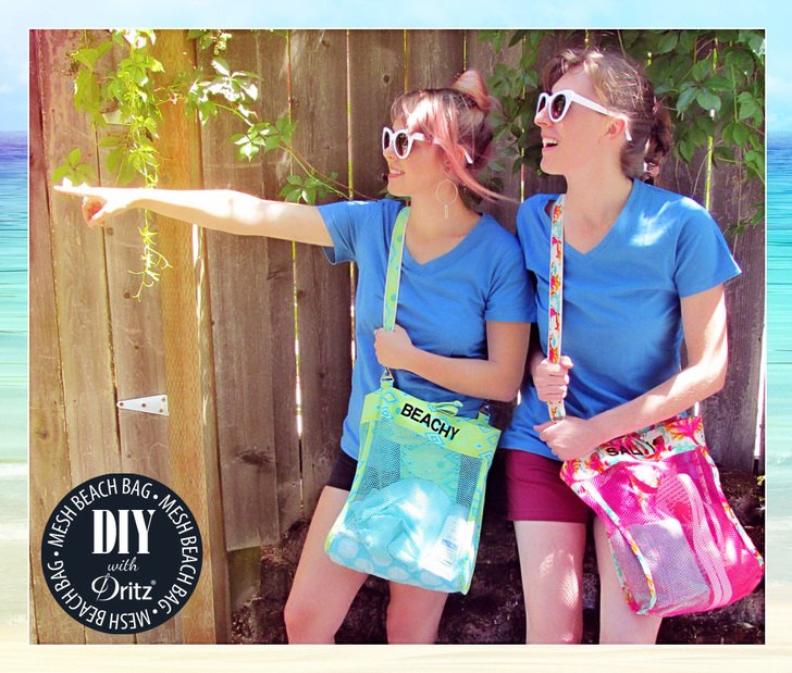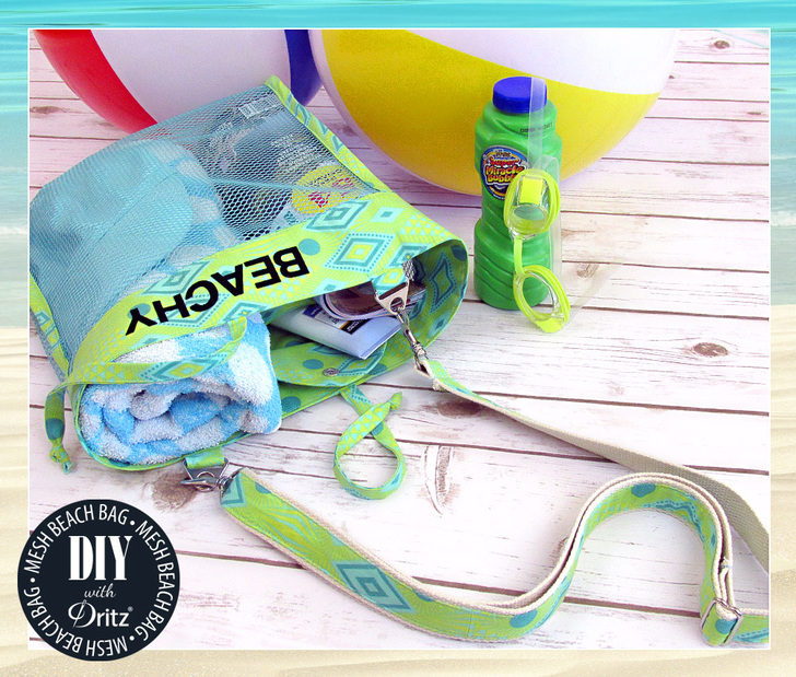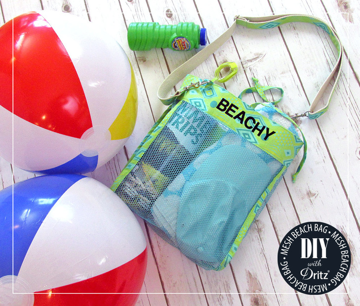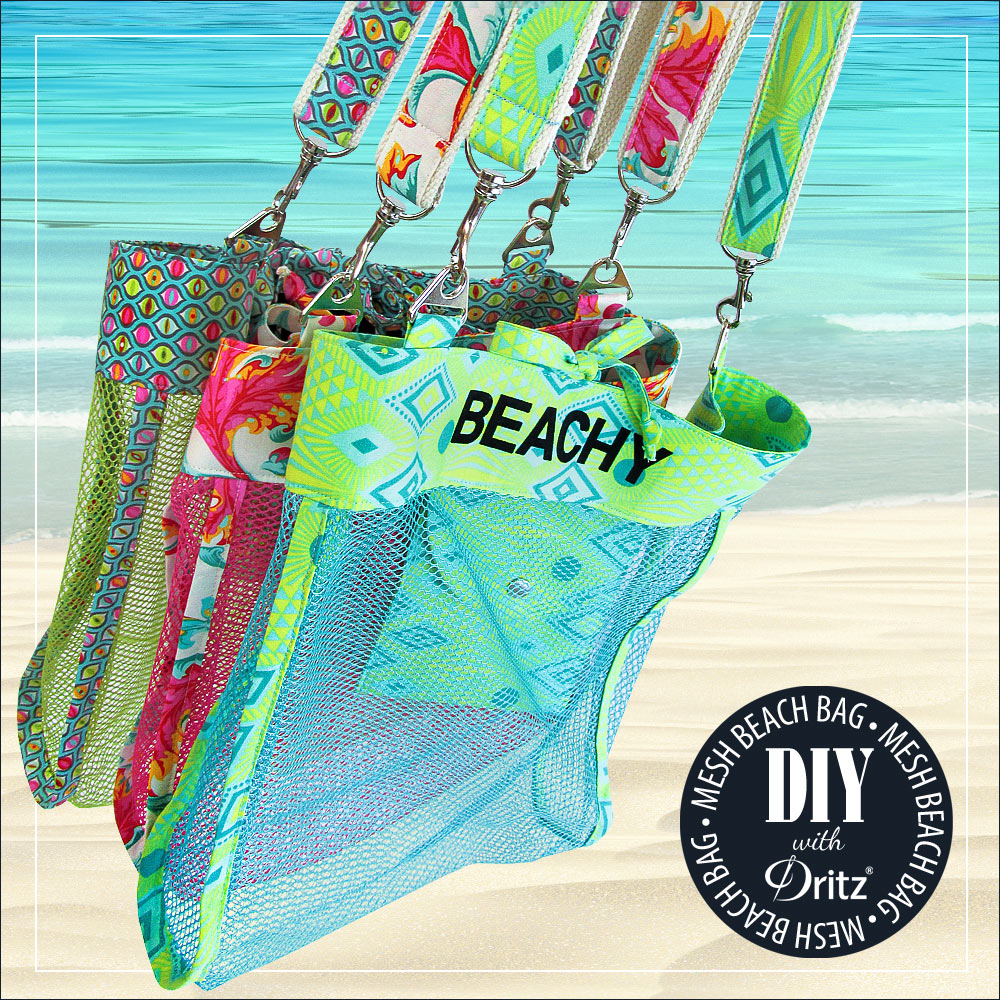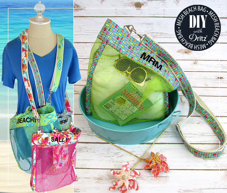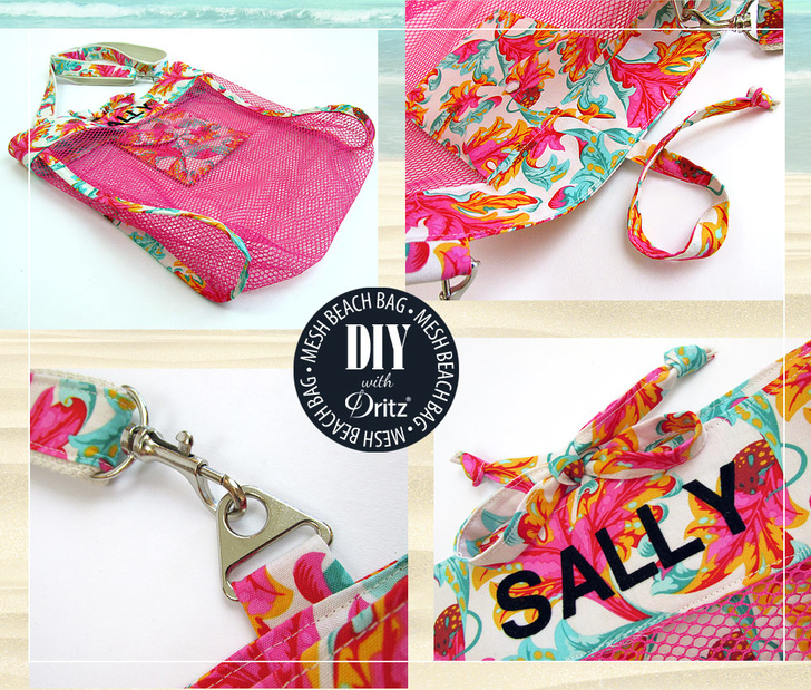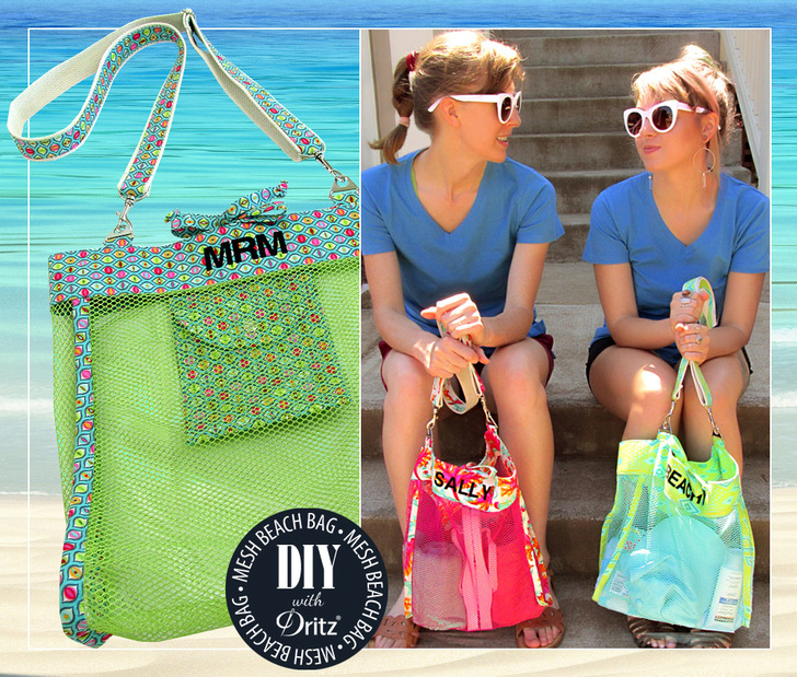 Our super cute Mesh Beach Bags are perfect for all your warm weather adventures. The mesh body lets sand and dirt sift out while at the same time allowing air to flow in and help dry out suits and towels. We used Dritz® Iron-on Letters to personalize our bags. Professional Dritz® hardware adds the functionality with an interior snapped pocket and detachable cross body strap.
