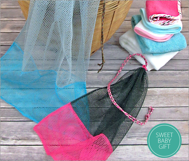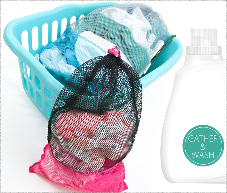 The bags can be used to simply gather up your washables to carry to the laundry room. Or you can pop the whole kit and caboodle into the washer and dryer.