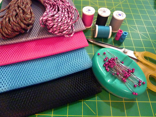 Fabric mesh is available in a variety of of weights and sizes. We recommend a lightweight mesh for these bags. Our choice was a handy mesh pre-cut (18″ x 54″) from ByAnnie, which comes in a variety of cool colors.