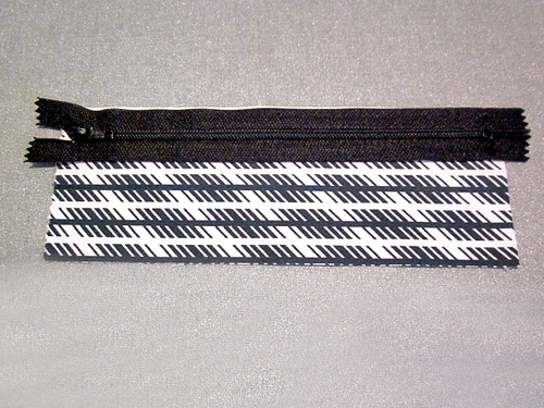- ONE 7″ zipper to coordinate with the fabric and elastic; we originally used black for both pouches