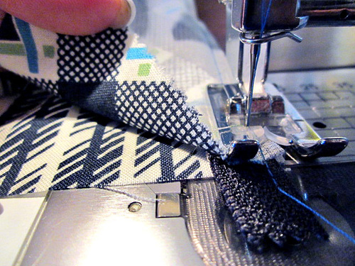- Stitch across the panel through all the layers. You should be stitching right along the zipper teeth.