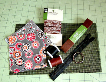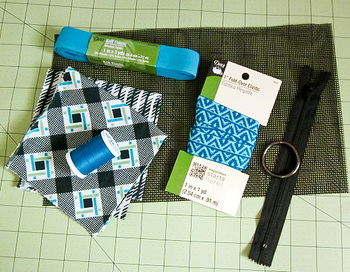 A zippered pouch is our favorite carryall when small items need to travel. For this clever little critter, we mixed fold-over elastic with cotton fabric and pet screen to create a sporty pouch you can take across the country on vacation or across town to the gym.