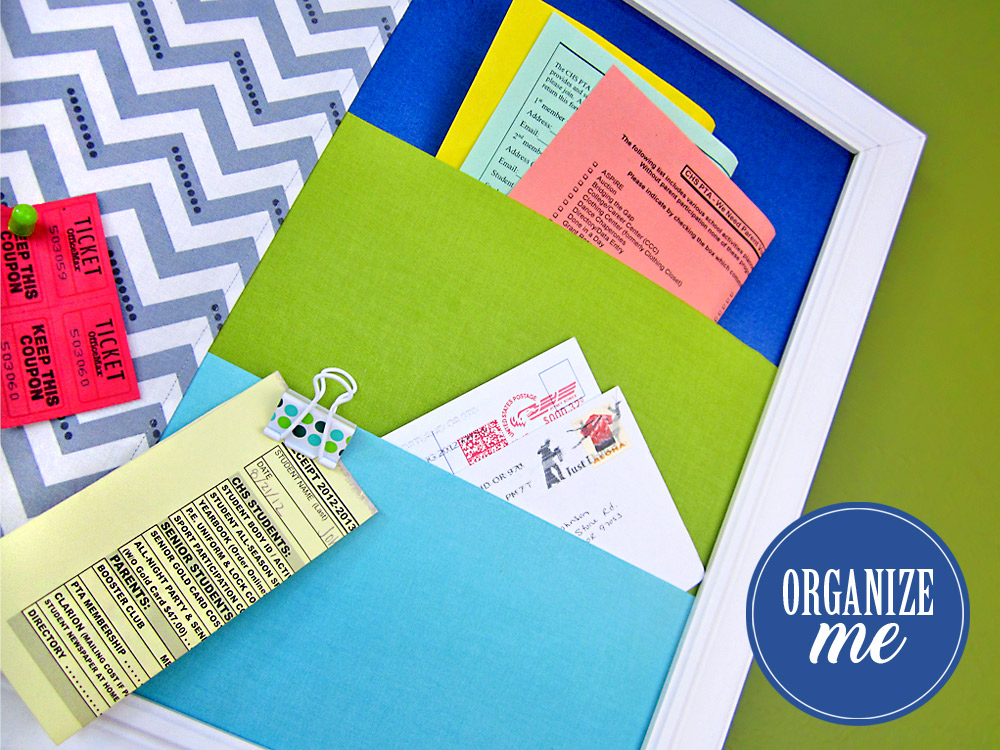 People in general, and kids in particular, generate lots of bits and pieces of stuff: important forms, special coupons, lucky tickets, keys to long forgotten locks… there really isn’t another word for it. In fact, if you look up “stuff” in the dictionary, there’s probably a picture of the top of your desk or your kitchen counter! Keep those counters and other work surfaces tidier, and everything more organized, with our pretty framed pinboard, featuring three handy, stuff-collecting pockets.