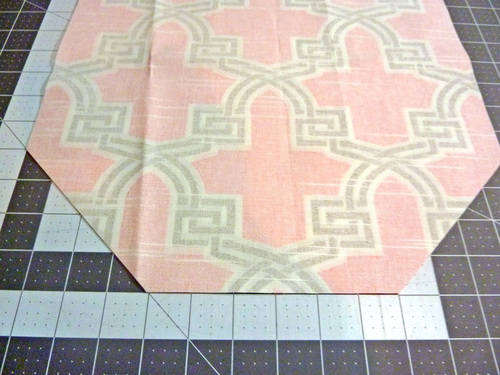 3. Using your see-through ruler and a rotary cutter, slice away the corners through both layers.