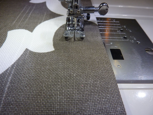 10. Using a ¼” seam allowance, topstitch along the entire seam (along both sides and across the angled bottom, pivoting at all the corners). We used our Janome Quarter Inch Seam foot.