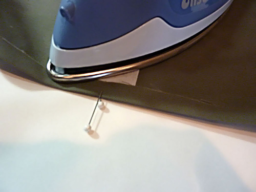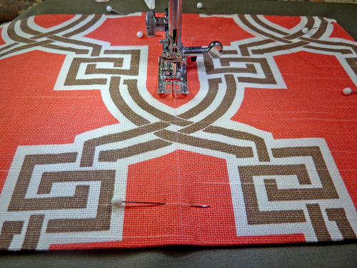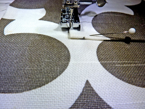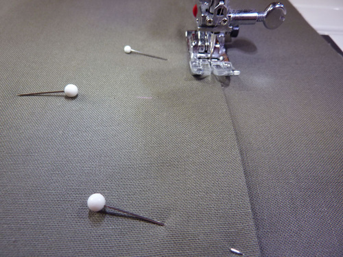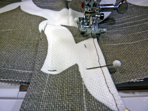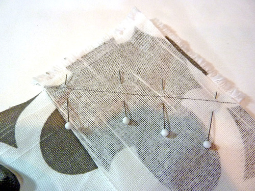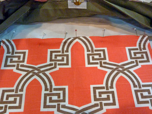 8. Pin the pocket in place along both sides and across the bottom.