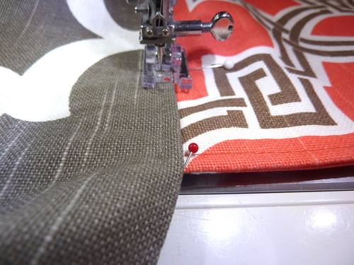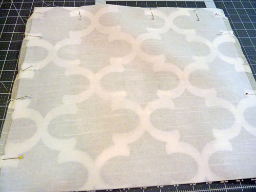 2. Place the two panels right sides together. Pin along both sides and across the bottom.