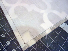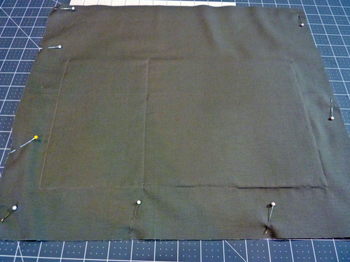 12. Position the larger solid pocket on the remaining lining panel. It should sit 2¼” up from the bottom raw edge of the lining panel and 2¼” in from each side.