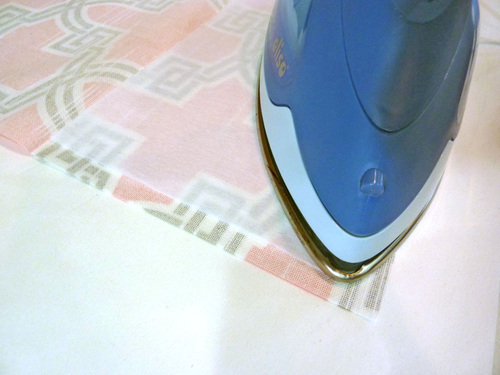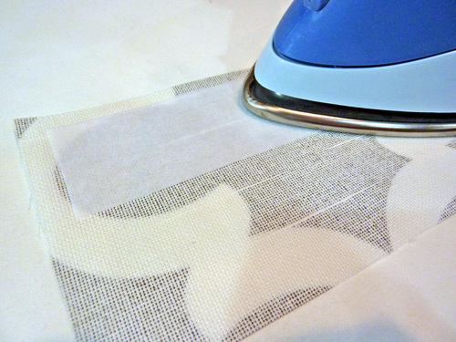 5. Following manufacturer’s instructions, fuse the interfacing to the wrong side of one fabric flap panel.