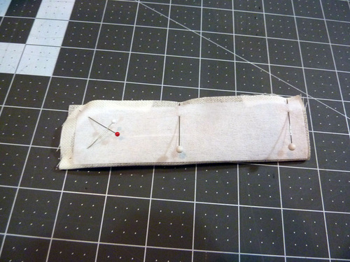 3. Fold the fabric strip right sides together. Pin in place along the side and one end.