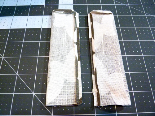 7. Turn the tabs right side out through the open ends. Use a long, blunt end tool, such as a chopstick or knitting needle to gently push out the corners. Press both tabs flat.