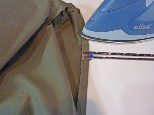 3. Find the flap. Measure to find the exact center along the flap’s straight raw edge. Mark this point with a pin.