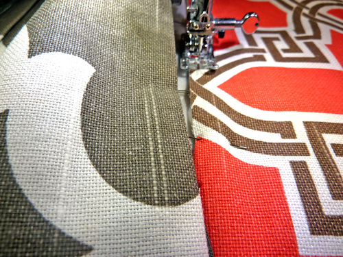 NOTE: This exterior pocket is not lined, so you may want to finish the raw edges of the pocket panel. We used a simple zig zag stitch.