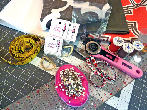 • 1 yard of 44″+ wide standard weight cotton for the bag’s lining and the larger lining pocket