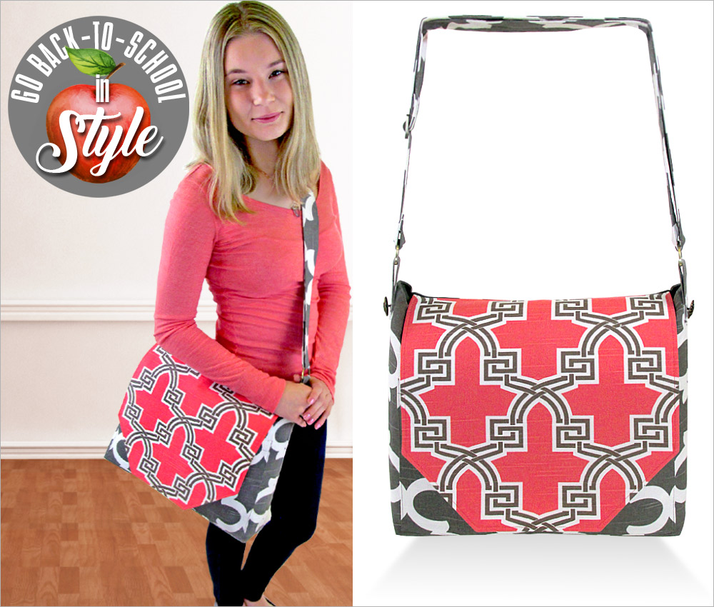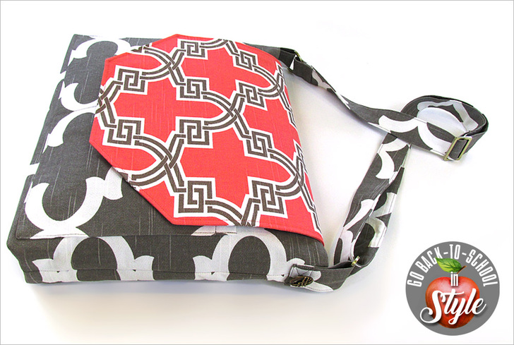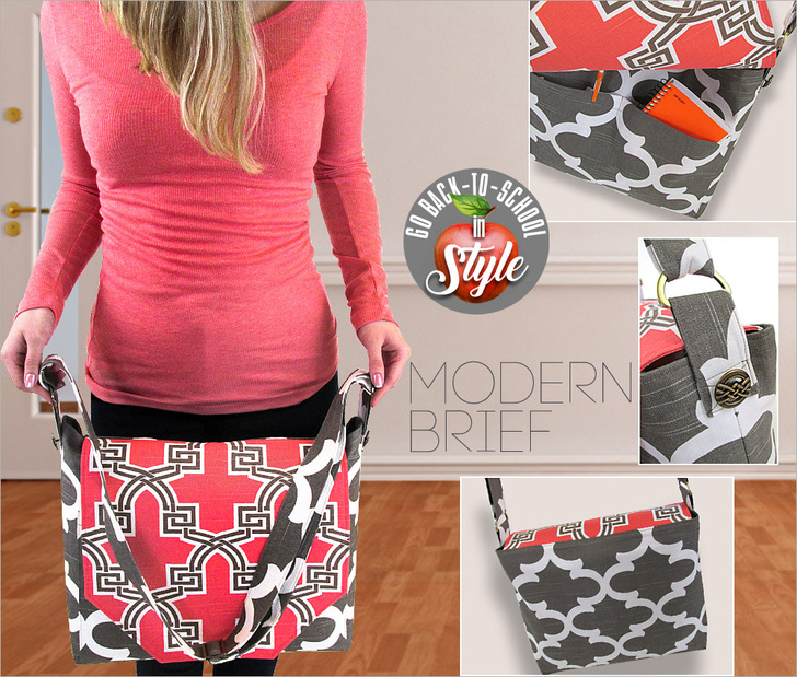 Back-to-school means back to the books, which also means carrying those books from class to class. It’s supposed to be a digital world, yet we still have an awful lot of stuff to haul around! Use this classic messenger style brief to carry it all with both good looks and smart functionality. We used mid-weight cotton duck fabric from Premier Prints with bold, modern graphics, and adding an unexpected splash of bright color on the flap. The bag would work equally well in solids or you could even turn your brief bucolic with a unique floral combo. It’s a crisp, cool style that’s right on trend for either guys or gals.