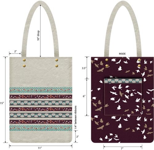 TWO 2½” x 25″ strips for the handles - From the lining fabric (Wings Ave Chatter in our sample), cut the following: