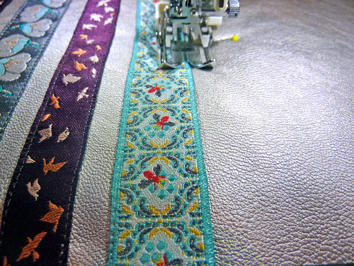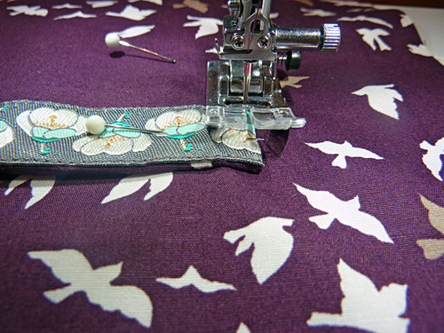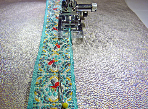 - Edgestitch the ribbon in place along both sides.