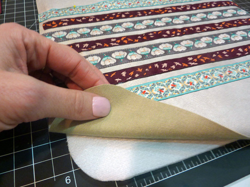 - Press down the top raw edge of the lining ½” all around.