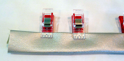 - Pin or clip in place. As mentioned above, pins are certainly an option for this project and we used them. However, Wonder Clips are also a great option when working with faux leather.