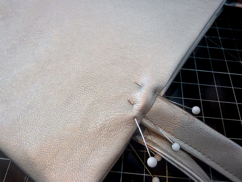 - Place the outer edge (the seamed edge) of the handle loop at these points.
