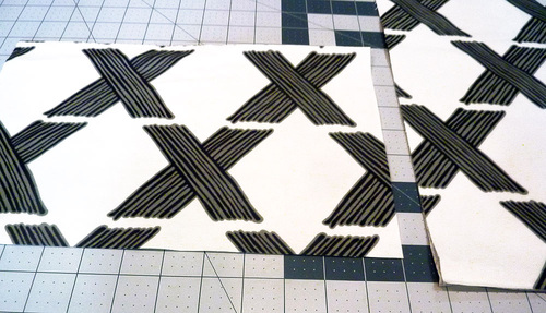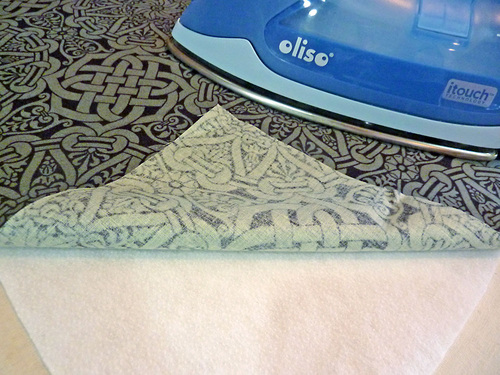 - Find the two lining panels and the fusible fleece panels. Following manufacturers instructions, fuse the fleece to the wrong side of the fabric.