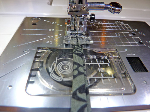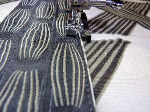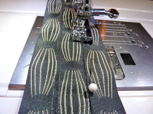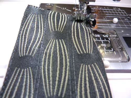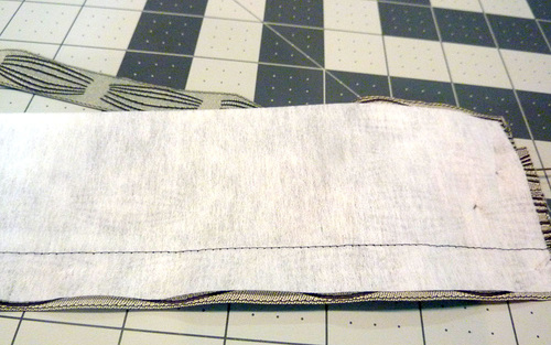 - Edgestitch each accent band in place along the top and bottom edges; the edges that were left unstitched during the steps above.