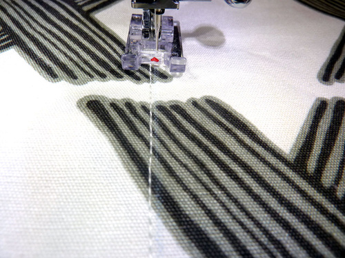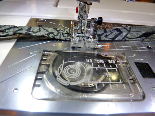- If possible, re-thread with invisible thread in the top and bobbin. This will provide the best look as there is one line of stitching across the ribbons for each strap. The stitching will disappear against the canvas edges and will be barely visible for these horizontal seams across the ribbons.