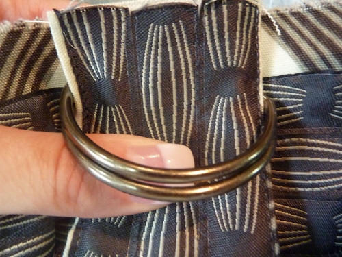 - The D-ring tab should be pulled up into place and your topstitching seam should run across it. This will give that tab some extra security against the weight of the D-rings. Do NOT stitch across the longer front strap. It should be pulled out of the way of this final topstitching seam.