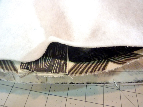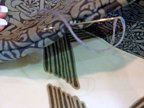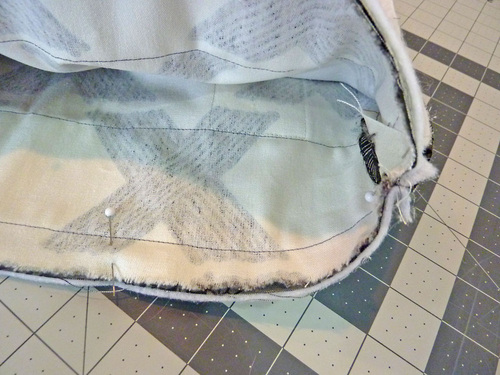 - Pull out the bottom of the lining. You can either edgestitch the opening closed or hand stitch it closed. We chose to hand stitch closed.