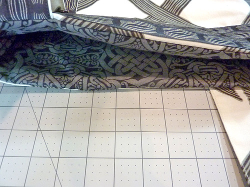 - Turn the bag right side out through the opening you left in the bottom of the lining.