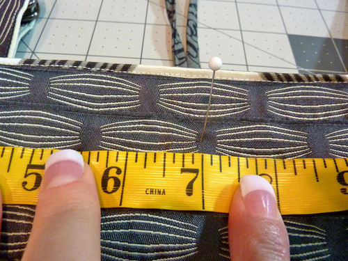 - Mark the center front of the bag directly opposite the loop closure ties.