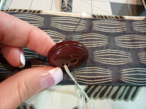 - Stitch the large button in place. You need to double up your thread to not only securely attach the button, but to give the button stitching the right heft.