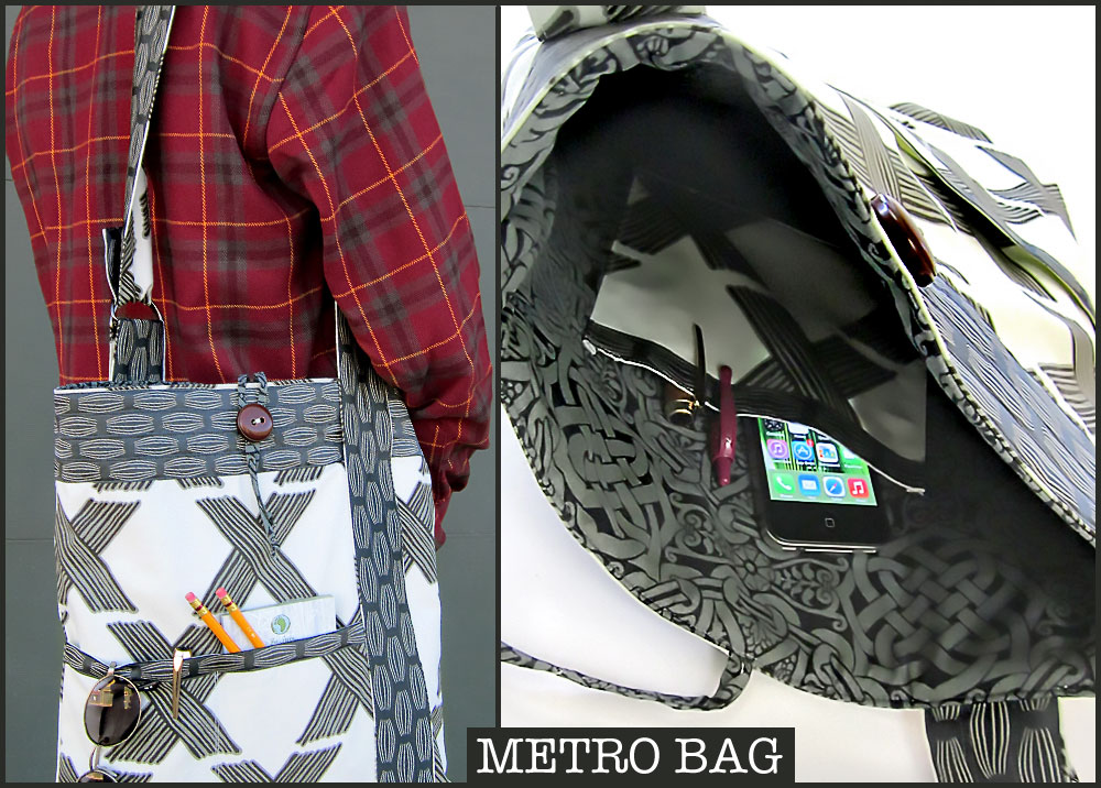 This project also answers the many requests we get for more “guy friendly” items. We selected richly muted colors and motifs that give them a masculine appeal – although several women here at S4H were ready to grab this Metro Bag for their own.