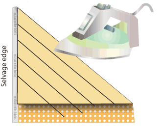 - Fold the fabric back diagonally so a straight edge is parallel to the selvage.